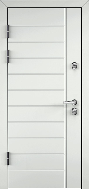Эта белоснежная входная дверь с линиями №30 станет стильным и надежным элементом для любого интерьера. Благодаря отделке из панелей МДФ с ПВХ-покрытием, дверь выглядит элегантно и обладает высокой устойчивостью к внешним повреждениям. Внешний вид дверного полотна дополнен утонченными линиями, что придает ей современный, лаконичный вид. Прочный каркас из профильных труб 50х25 мм и лист металла толщиной 2 мм обеспечивают отличную защиту и долгий срок службы. Два контура резинового уплотнителя эффективно защищают от шума и холода, создавая комфорт в помещении. Замки Просам и Мосрентген с тремя ригелями гарантируют надежную безопасность. Дополнительно можно заказать зеркала, стеклопакеты и кованые элементы, что делает дверь универсальной для разных дизайнерских решений. Квартирная дверь входная белоснежного цвета с линиями №30 от производителя: быстрое изготовление и монтаж в Тарусе, индивидуальные размеры, широкий выбор материалов и фурнитуры, официальная гарантия до 10 лет.