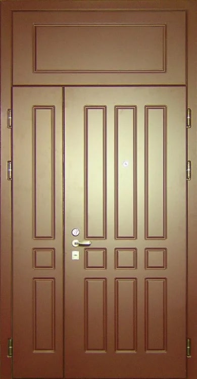 Полуторная входная дверь с верхней фрамугой №2 — это оптимальное решение для тех, кто ищет функциональность и эстетичность в одном продукте. Она отличается стильной отделкой из МДФ, которая устойчива к механическим повреждениям и сохраняет свой внешний вид на долгие годы. Конструкция двери включает прочный каркас из профильной трубы 50х25 мм и металл толщиной 2 мм, что обеспечивает высокую надежность. Наличие верхней фрамуги придает двери визуальную легкость и позволяет пропускать больше света, создавая уют в прихожей. Замки от надежных производителей, таких как Просам и Мосрентген, с тремя ригелями гарантируют высокий уровень безопасности. Для дополнительной кастомизации можно добавить стеклопакет, зеркало или кованые элементы, а также установить видеодомофон для контроля доступа. Полуторная входная дверь с верхней фрамугой №2 от производителя: быстрое изготовление и монтаж в Тарусе, индивидуальные размеры, широкий выбор материалов и фурнитуры, официальная гарантия до 10 лет.
