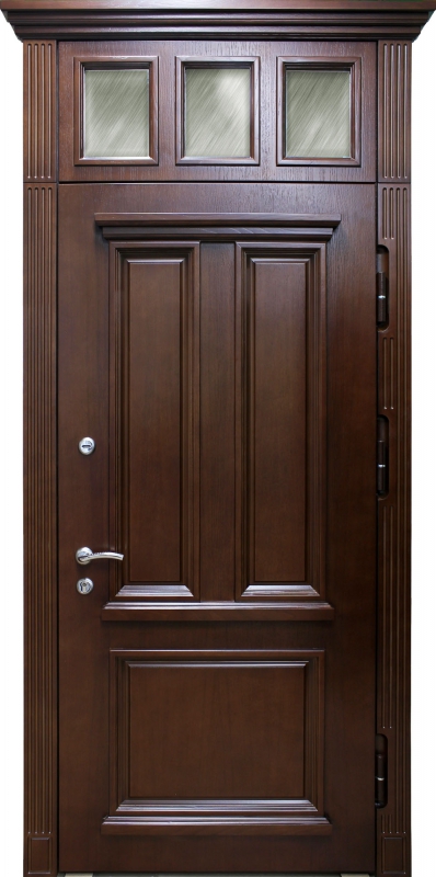 Дверь с сувальдным замком и фрамугой №34 идеально сочетает в себе стиль и надежность. Панель из натурального дерева, использованная как для внешней, так и для внутренней отделки, придает двери благородный и элегантный вид, делая её отличным выбором для помещений с классическим или современным интерьером. Каркас двери выполнен из профильной трубы 50х25 мм и усилен ребрами жесткости, что гарантирует прочность конструкции. Замки от производителей "Просам" и "Мосрентген" с тремя ригелями обеспечивают высокий уровень безопасности. Дверь оснащена уплотнителями с двумя контурами, что гарантирует отличную герметичность, а возможность замены замков и добавления кованых элементов делает её адаптируемой под любые требования. Кроме того, дверь можно дополнить зеркалом, стеклопакетом или видеодомофоном для еще большего комфорта. Входная дверь с сувальдным замком и фрамугой №34 от производителя: быстрое изготовление и монтаж в Тарусе, индивидуальные размеры, широкий выбор материалов и фурнитуры, официальная гарантия до 10 лет.