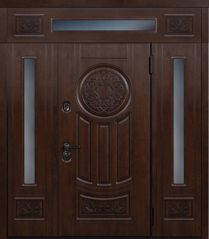 Эта нестандартная парадная дверь с фрамугой №6 — отличный выбор для тех, кто ценит элегантность и долговечность. Внешняя и внутренняя отделка из МДФ придает дверям стильный и современный вид, а также защиту от механических повреждений. МДФ устойчива к царапинам и вмятинам, что делает дверь идеальной для долгосрочной эксплуатации. Каркас из профильной трубы 50х25 мм и лист металла толщиной 2 мм обеспечивают прочность и надежность, а ребра жесткости из профильных труб гарантируют дополнительную устойчивость. В двери установлены блокираторы, два контура уплотнителей из резины, что повышает звуко- и теплоизоляцию. Замки от известных производителей, таких как Просам и Мосрентген, обеспечат надежную защиту. Возможность комбинировать отделку, добавлять зеркало, стеклопакет или кованые элементы позволяет легко адаптировать дверь под любые предпочтения. Нестандартная парадная дверь с фрамугой №6 от производителя: быстрое изготовление и монтаж в Тарусе, индивидуальные размеры, широкий выбор материалов и фурнитуры, официальная гарантия до 10 лет.