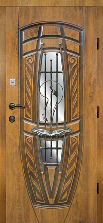 Для загородного дома важна дверь, которая умеет быть не только красивой, но и практичной. Натуральное дерево в отделке делает её внешне солидной и теплой, а декоративная ковка добавляет изящества и превращает вход в стильный акцент фасада. В основе конструкции лежит прочный стальной каркас с листом металла толщиной 1,5 мм и ребрами жесткости, а противосъёмные блокираторы обеспечивают дополнительный уровень защиты. Особого внимания заслуживает терморазрыв, выполненный в коробке и полотне: он надежно изолирует дом от холода, предотвращает промерзание и сохраняет уют даже при сильных морозах. Входная дверь уличная с ковкой №22 также оснащена тройным контуром магнитного уплотнения, что усиливает герметичность и помогает снизить шум. Конструкция позволяет выбирать размеры и дополнения по вкусу, включая стеклопакет, зеркало или видеодомофон, создавая гармонию между безопасностью, удобством и выразительным дизайном. Входная дверь уличная с ковкой №22 от производителя: быстрое изготовление и монтаж в Тарусе, индивидуальные размеры, широкий выбор материалов и фурнитуры, официальная гарантия до 10 лет.