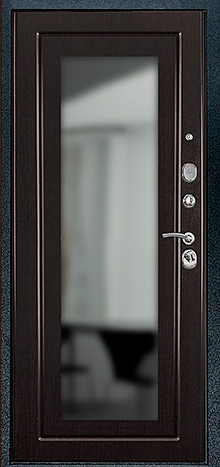 Шумоизоляция, выполненная с использованием плиты минваты или пенопласта, эффективно снижает уровень шума, а два контура резинового уплотнителя обеспечивают отличную герметичность. Терморазрыв коробки и полотна помогает поддерживать комфортную температуру внутри. Дополнительный элемент декора в виде зеркала добавляет стиль и функциональность, а возможность замены замков на более современные модели, включая биометрические умные замки, делает дверь еще более безопасной и удобной.
