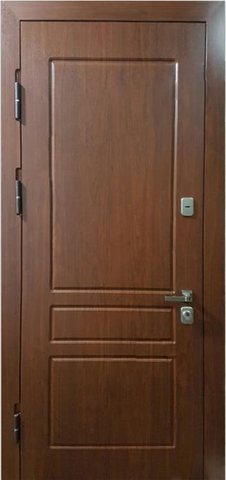 Дверь входная уличная с терморазрывом №41 – это надежная и стильная модель, идеально подходящая для частных домов и коттеджей. Конструкция двери с терморазрывом в коробке и полотне эффективно защищает от холодного воздуха и влаги, обеспечивая стабильный микроклимат внутри помещения. Внешняя и внутренняя отделка из панелей МДФ с ПВХ покрытием не только привлекает внимание своим современным дизайном, но и обеспечивает отличную стойкость к механическим повреждениям, а также долговечность. Металлическое полотно толщиной 1,5 мм с ребрами жесткости из профильных труб гарантирует высокую прочность, а также надежную защиту от взлома. Шумо- и теплоизоляция из пенопласта повышенной плотности создают дополнительный комфорт. Дверь оснащена высококачественными замками Kale Kilit с тремя ригелями, что обеспечивает высокий уровень безопасности. Дверь входная уличная с терморазрывом №41 от производителя: быстрое изготовление и монтаж в Тарусе, индивидуальные размеры, широкий выбор материалов и фурнитуры, официальная гарантия до 10 лет.