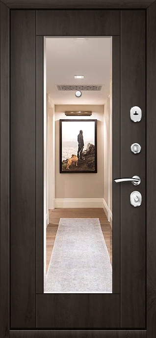 Сочетание зеркала и металла в одном изделии делает эту модель особенно удобной для современных интерьеров. Дверь входная металлическая с зеркалом внутри №46 предназначена для установки в квартиры, офисы и частные дома, где важна не только защита, но и комфорт использования. Внутреннее зеркало избавляет от необходимости дополнительных предметов мебели, экономя место и визуально расширяя пространство. Каркас собран из профильной трубы и усилен рёбрами жёсткости, а стальной лист толщиной 2 мм надёжно противостоит механическим нагрузкам. Накладки МДФ служат практичным и долговечным решением: они устойчивы к царапинам, не теряют внешней привлекательности и легко поддаются уходу. Два контура резинового уплотнителя уменьшают проникновение шума и сквозняков, а возможность комбинировать отделку позволяет подобрать исполнение под любой интерьер. Дверь входная металлическая с зеркалом внутри №46 от производителя: быстрое изготовление и монтаж в Тарусе, индивидуальные размеры, широкий выбор материалов и фурнитуры, официальная гарантия до 10 лет.