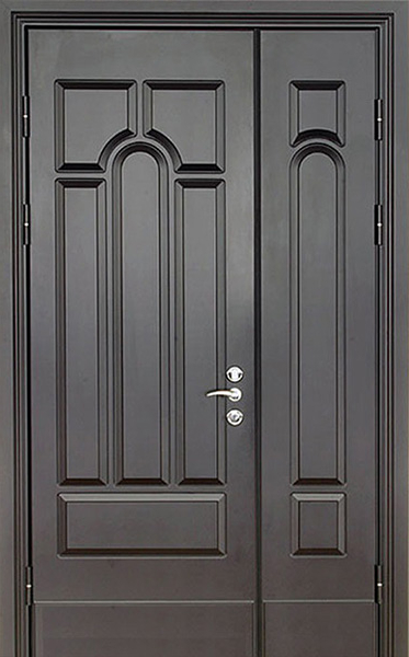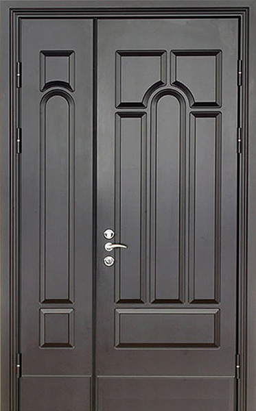 Металлическая двухстворчатая дверь для дома цвета графит №27 – это стильное и надежное решение для вашего жилья. Внешняя и внутренняя отделка выполнены из МДФ, что придает двери изысканный вид и увеличивает её стойкость к механическим повреждениям. Цвет графит придаёт двери современный и элегантный оттенок, который легко впишется в интерьер как частных домов, так и современных офисов. Металлическая двухстворчатая дверь для дома цвета графит №27 от производителя: быстрое изготовление и монтаж в Тарусе, индивидуальные размеры, широкий выбор материалов и фурнитуры, официальная гарантия до 10 лет.
