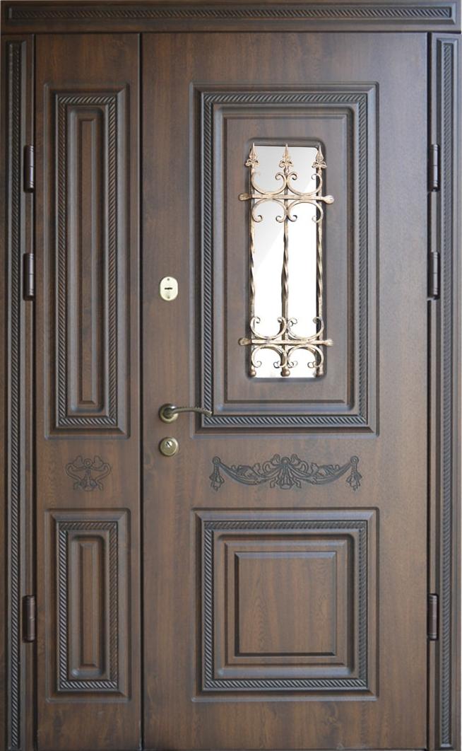 Большая выходная дверь со стеклом и ковкой №4