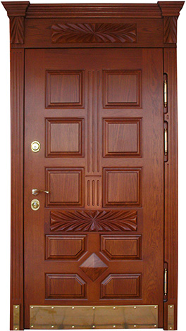 Эксклюзивная высокая входная дверь с железным отбойником №36 — это образец элегантности и функциональности, который идеально впишется в любой частный дом или коттедж. Изготовленная из массива дерева, она будет долго сохранять свой привлекательный внешний вид и устойчивость к внешним воздействиям. Прочная конструкция из профильных труб и листа металла толщиной 2 мм, усиленная ребрами жесткости, гарантирует надежность и долговечность. Терморазрыв в коробке и полотне помогает минимизировать теплопотери и защищает от перепадов температуры. Дверь оснащена высококачественными замками, что обеспечивает высокий уровень безопасности. Железный отбойник добавляет двери не только дополнительную защиту, но и стильный элемент дизайна. Эксклюзивная высокая входная дверь с железным отбойником №36 от производителя: быстрое изготовление и монтаж в Тарусе, индивидуальные размеры, широкий выбор материалов и фурнитуры, официальная гарантия до 10 лет.