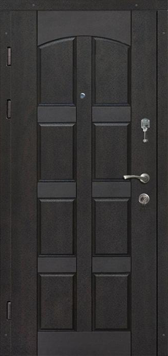Входная дверь для дома уличная №18 разработана для установки в условиях, где от двери требуется максимум прочности и устойчивости к погодным испытаниям. Молотковое напыление на внешней стороне не только придает фактурный декоративный эффект, но и защищает поверхность от влаги, ударов и мелких повреждений, сохраняя привлекательный вид долгие годы. Внутри дверь отделана панелями МДФ с ПВХ-покрытием, которые отличаются стойкостью к царапинам и удобством в уходе, а также гармонично вписываются в любой интерьер прихожей. Каркас и полотно выполнены из профильных труб, усиленных стальным листом толщиной 2 мм и дополнительными ребрами жесткости, что делает конструкцию надежной и долговечной. Два контура резинового уплотнителя эффективно защищают от сквозняков и уличной пыли. Особое внимание заслуживает наличие терморазрыва в коробке и полотне: эта технология предотвращает промерзание и образование конденсата, обеспечивая сохранение тепла даже в сильные морозы. Входная дверь для дома уличная №18 от производителя: быстрое изготовление и монтаж в Тарусе, индивидуальные размеры, широкий выбор материалов и фурнитуры, официальная гарантия до 10 лет.