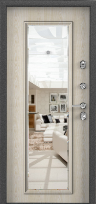 Сочетание прочной конструкции и декоративных решений делает эту модель особенно практичной для частного дома или квартиры. Каркас и полотно выполнены из профильной трубы с листом стали толщиной 2 мм, усиленные рёбрами жёсткости и блокираторами, что обеспечивает высокую надёжность. Два контура резинового уплотнителя препятствуют проникновению влаги и сквозняков, а порошковое напыление на внешней поверхности защищает металл от коррозии и сохраняет аккуратный вид даже при воздействии осадков и солнечного света. Внутренняя отделка панелями МДФ ПВХ создаёт уютный интерьерный акцент и устойчива к повседневным нагрузкам. Дверь входная металлическая уличная в дом №12 дополнена зеркалом, которое делает её не только функциональной, но и более удобной в быту. Для безопасности предусмотрены два замка российского производства — сувальдный Просам и цилиндровый Мосрентген, каждый с тремя ригелями. Дополнительно дверь можно оснастить стеклопакетом или коваными элементами, превратив её в индивидуальное решение для конкретных задач. Дверь входная металлическая уличная в дом №12 от производителя: быстрое изготовление и монтаж в Тарусе, индивидуальные размеры, широкий выбор материалов и фурнитуры, официальная гарантия до 10 лет.